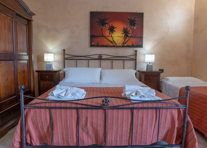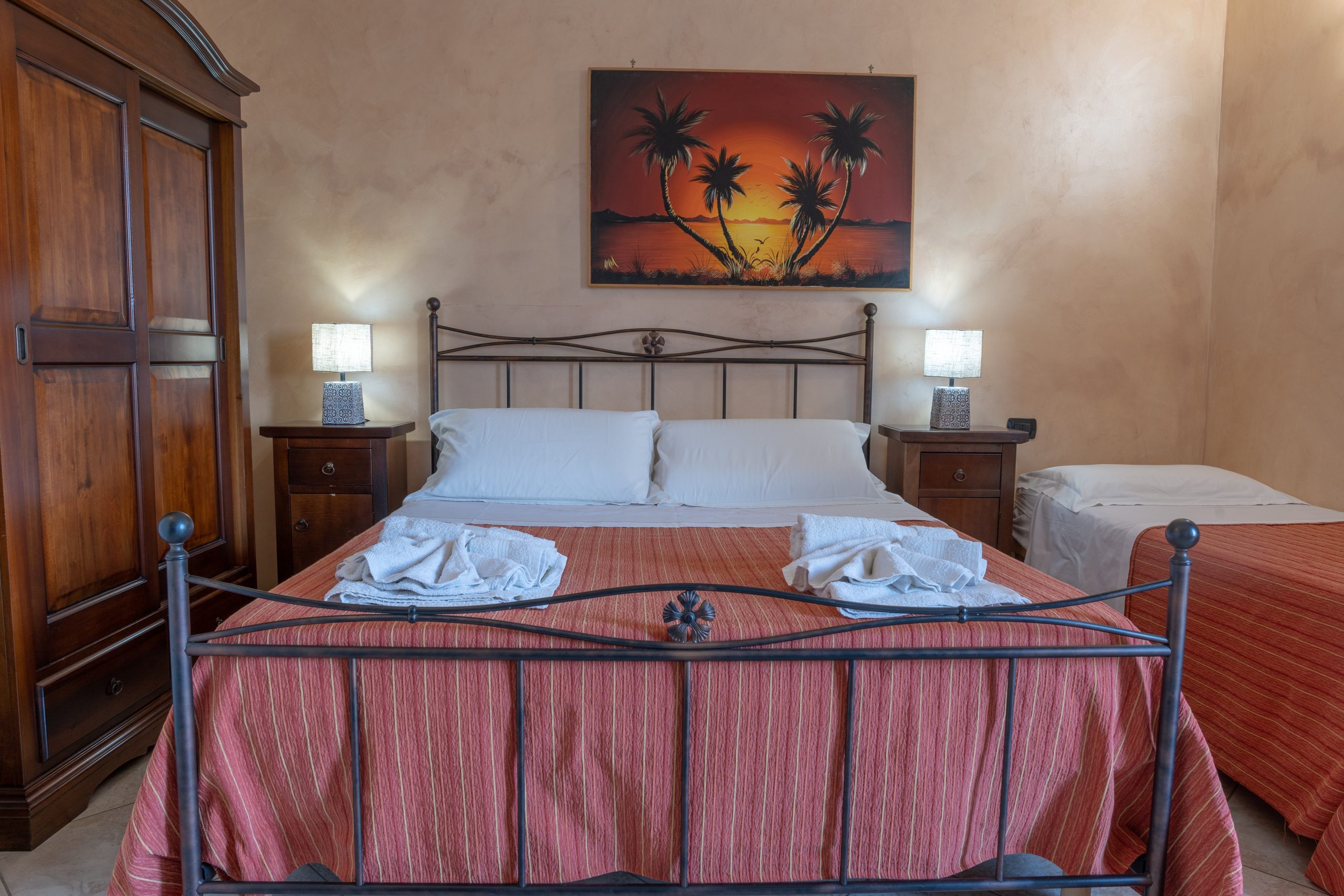 La Stanza Scirocco è pensata per ospitare fino a tre persone ed è arredata con un confortevole letto matrimoniale e un accogliente letto singolo, garantendo un soggiorno piacevole e personalizzato per tutti gli ospiti.